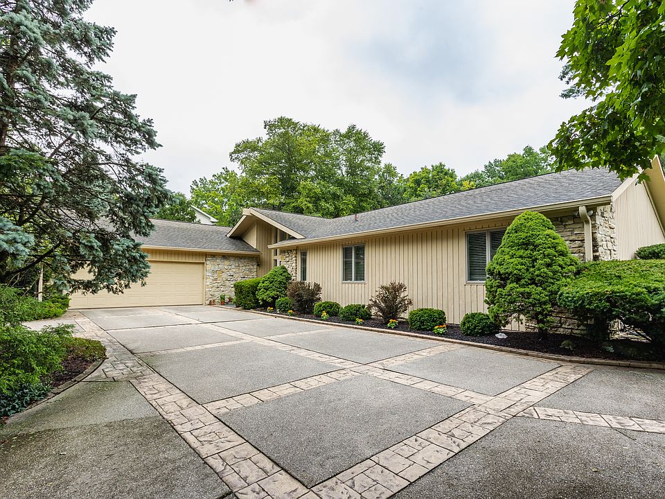 Tucked within the sought-after Eden Glen neighborhood, this mid-century modern gem offers timeless architectural character paired with a lush, private setting. Set on a sprawling 3/4-acre lot, the home features soaring ceilings, dramatic floor-to-ceiling windows, and expansive views of the tree-canopied backyard-creating a true oasis just minutes from downtown Carmel's Arts & Design District. The main level hosts three bedrooms, including an oversized primary suite with its own private deck access. A spacious kitchen with center island connects seamlessly to the dining and living areas, and a large screened porch invites you to enjoy serene mornings and breezy summer evenings. The walkout lower level is designed for entertaining with a generous recreation room, wet bar, and two additional bedrooms-each with newer Andersen sliding doors opening to a backyard deck. The oversized two-car garage, aggregate concrete driveway, and meticulous maintenance make this home move-in ready. Located near award-winning Carmel High School, top-rated Carmel Clay schools, and just minutes from shopping, dining, and parks-this is a rare opportunity to own a beautifully preserved piece of mid-century architecture in a premier location.