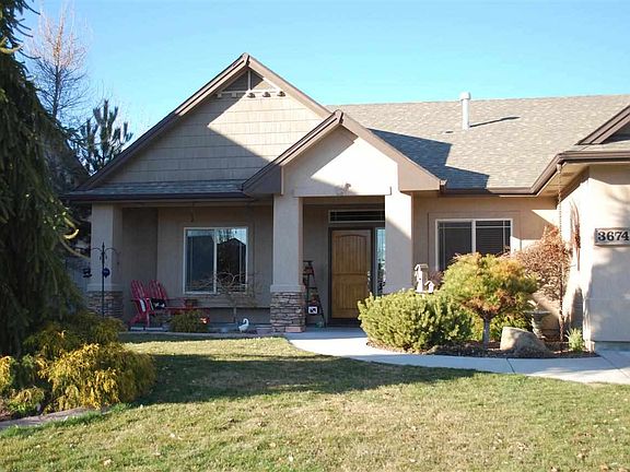PC2002 Fabulous one-owner home with North facing backyard, views of Bogus & Boise Front & no immediate neighbors. 3 huge Bedrooms plus Office & Bonus Room. 2-sided Gas Fireplace is shared w/Office & Great Room. Two Master suites with owner's suite providing access to back patio & private bath featuring claw foot tub, all tile walk-in shower, split dual vanities & BIG walk-in closet. Kitchen features full sized refrigerator & freezer side by side, solid Granite, pantry & 6' wide viewing window with transoms.