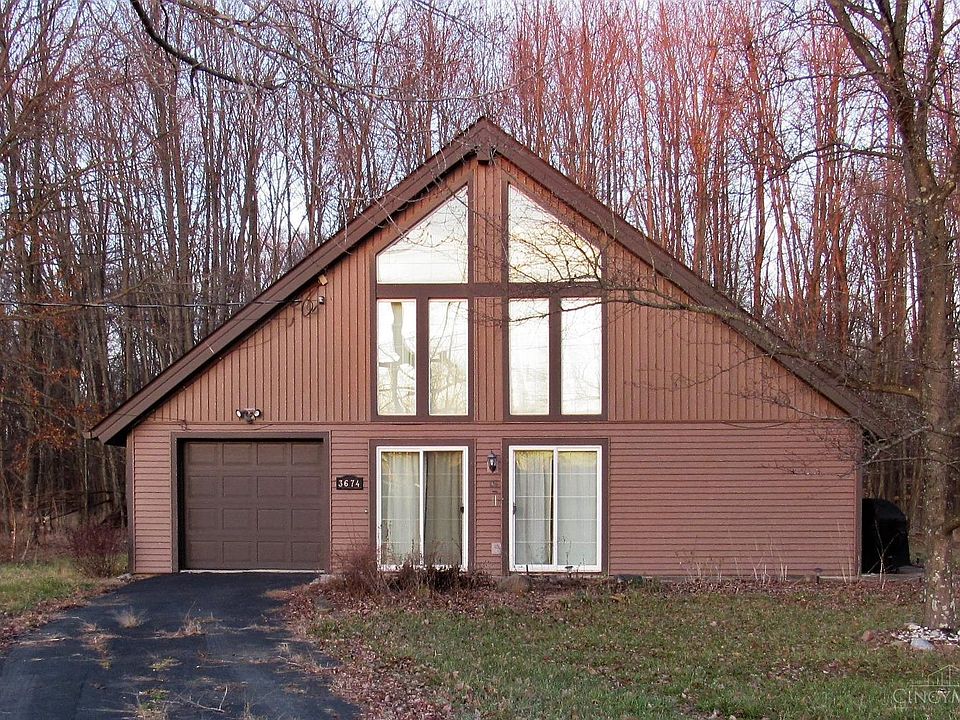 Don't miss this custom built A-frame home, nestled on a 1+ acre wooded lot just waiting for your finishing touches. This larger than it looks home, features 3 bedrooms, 2 bathrooms, a cathedral ceiling, large windows a shed and a 1 car garage. Seller is offering a $4000 carpet allowance.