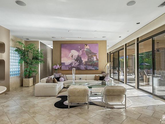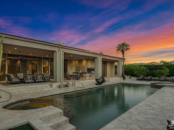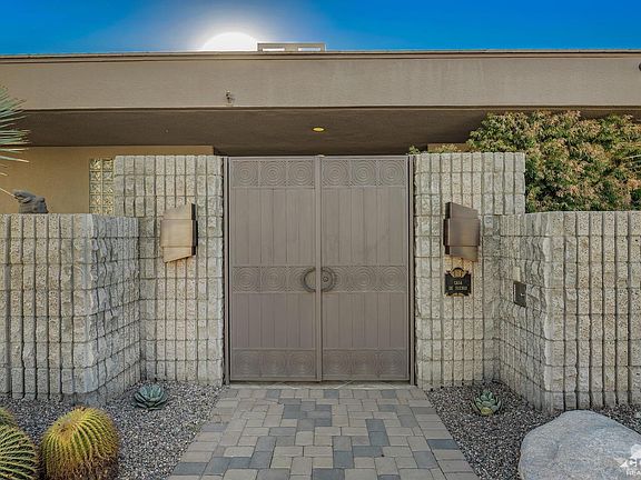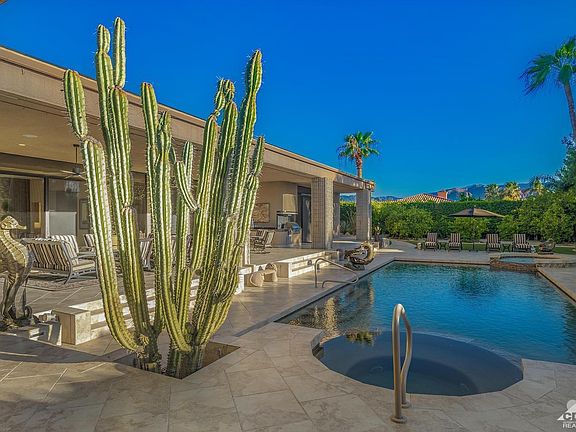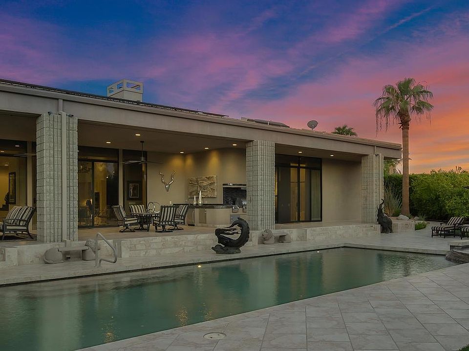 Updated and immaculate in the heart of Tamarisk area. Artificial grass- zero water required for maintenance. Desert Landscaping yet lush and resort like. Wow views, privacy, no hoa's and a perfect 10 - a highly sophisticated and spectacular contemporary home - Stoker built - architecture by Curtis Shupe this one has it all. 3 bedrooms 4 1/2 bathrooms - a superb cooks kitchen with 4 ovens, large elegant dining room, large living room, and cozy family room all leading onto a covered magnificent patio. A 50 ft. pool for the person who loves to swim. Master suite has fireplace, 2 bathrooms and 2 large walk in closets, and of course a sitting area overlooking the pool and taking in all the views. Too much to mention here, the home is in mint condition, lots of storage and always ready to show. Fully owned solar recently installed, outstanding security system and surround music system. This is one smart house.