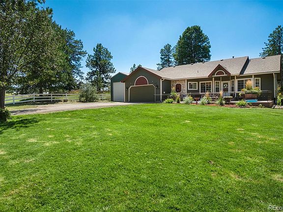 This unfinished area provides walk-out access to the back yard. Finally, a spacious metal shop is located next to the two car garage, measuring approximately 16' x 35', with a 12 foot door. It includes a sewer clean out for an RV, and has 110 volt/ 20 amp service. This spectacular home has been professionally landscaped, has newer exterior paint, and has wonderful curb appeal! Also, the owner's have just installed a BRAND NEW LEACH FIELD to service the property. The well accesses Upper Dawson. This home is the essence of country life, close to both Parker and Elizabeth, and has no HOA.