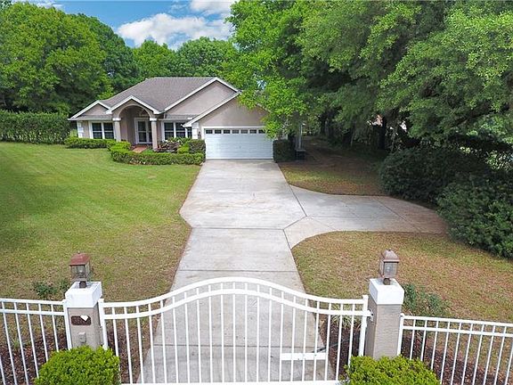 One or more photo(s) has been virtually staged. Bring your toys & hobbies to this private/gated home on the hill. Enjoy over 1.09 acres that is fenced, landscaped & irrigated. Over 3200 square feet of custom upgrades along with a 2 car attached garage and an oversized (25x28) detached 2 car workshop/garage. This home is an entertainer's dream with a screened courtyard, heated pool, rock waterfall & summer kitchen. Formal living & dining rooms, game room with wet bar & pool table for family fun. Double master suites. Attention to detail throughout including hardwood floors, crown molding, granite counter-tops, cherry cabinets, stainless appliances, double convention ovens, solar tube skylights, 2 fireplaces, house generator, 2 septic systems, water softener & zoned A/C systems. Pool has an electric heater and the generator has a propane tank. Short drive to shopping and restaurants. 45 minutes to Tampa and 50 minutes Lakeland. 5 miles to Exit 93 on I-75. Escape the hustle of the city and small lots offered by the builders and enjoy your own oasis.