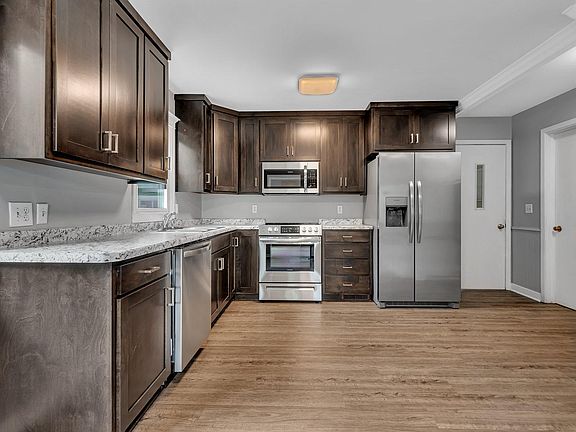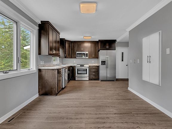 5 bed/3 bath home located on 1.38 acres! Home features a brand new kitchen with all new SS appliances, beautiful cabinets, flooring and paint. New carpet throughout the home. Main level has 3 bedrooms, 1 full bathroom, 1/2 bathroom, and a living room with gas fireplace. Kitchen walks out to deck. Full bathroom has all new tiled shower. Lower level is finished with 2 bedrooms, 3/4 bathroom with new shower, living room, and another kitchen with new appliances. Walks out to 1.38 acre back yard. No neighbors in the back. Home located in quiet culdesac. 2 stall attached garage. Outside home recently painted. Home is move-in ready! Quick close possible.