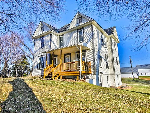 Picturesque farm setting on 9.2 acres with all the charm and character that could be expected. Well maintained & nicely updated, this 4 bedroom, 2 bath home features kitchen with granite countertops & tile backsplash. Hardwood floors, lots of built-ins, additional kitchenette, wet bar, 9 ceilings, parlor doors, cast iron radiators & a walk-up attic. Multiple outbuildings include 105x50 pole barn, 124x34 barn, 70x30 barn, 40x24 2-story granary, 30x22 detached garage, 60x40 loafing shed & 4 silos. All outbuilding roofs have been tinned. Great location on dead end road. Pride in ownership here!