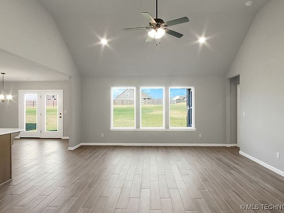 Introducing the Jasmine, a spacious 4-bedroom, 2-bathroom single-story home offering modern living space. As you enter the home, you'll be greeted by a grand cathedral ceiling in the living room, featuring a cozy corner tile fireplace and three large windows that fill the space with natural light.