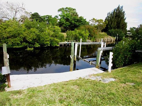 Best deal on boat-able waterfront home. Dock & Lift. Quiet and peaceful with lots of fish and birds and a view looking down canal to gorgeous sunsets. One bridge out and quick access to the open water of Charlotte Harbor. Very nice two bedroom, two bath home with two car garage. Electrical panel updated; Front windows high wind rated; dock recently re-decked, Appliances only three years old, public water and sewer with private well, Laundry in separate room off garage, Florida Room looking out past the fruit trees to the water, fenced yard, extra washer and dryer in garage do not convey.