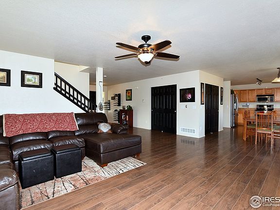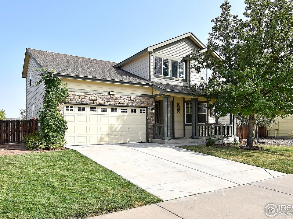 Beautiful Large 2 Story Home in quiet SW Loveland Neighborhood. 4 Bedrooms, 3 Baths. Covered Front Porch. Roomy Floor Plan holds large furniture and makes entertaining easy. Open Entry Way with Front Office/Formal Dining Room. Big Great Room with Gas Fireplace adjoins the spacious Kitchen. Dark Wood Plank Floors & Stainless Steel Appliances with Smooth Top Stove. Lots of Cabinets for Storage & Pantry. Dining Area looks out onto the fully fenced backyard with Patio & beautiful Landscaping. Upstairs has 4 Bedrooms, an Oversized Master Bedroom with 5pc. Bath, Sunken Tub, & Walk-In Closet. Great Views of the Front Range. Three good size additional Bedrooms. 40 Gallon Water Heater approx. 5 years old, Roof approx. 6 years old. Basement is unfinished except for one "secret" room that could be a kids playroom or secured storage area for a gun safe and valuables. South Facing Driveway for easy snowmelt. 2 Built in outdoor benches. Right across the street from Loveland Charter School