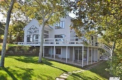 STUNNING ARCHITECTURAL Design Abounds In This Spacious, Three Story Modern Beach House. One Full Acre Of Privacy Situated Atop Protected Bluff And Nassau Points Finest Sandy Beach! Five Plus Bedrooms, Three Full Baths, Decks, Porches, Patio And A Master Bedroom Balcony Are The Perfect Blend Of Indoor Outdoor Waterfront Living!