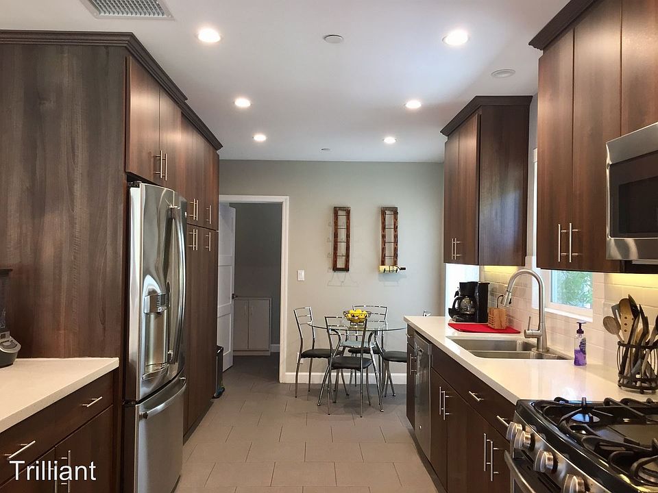 Stunning Modern Four Bedroom Home in Desirable Lower Hastings Ranch - This wonderful 4-bedroom, 4-bath, home with office is spacious bright and located in the desirable lower Hastings Ranch Area. The delightful kitchen has custom made cabinets in dark Italian walnut, stainless steel appliances, and quartz countertops. The great room combines an open kitchen, dining and living room for an indoor/outdoor feel with amazing panoramic patio doors. With its beautiful fireplace, hardwood floors, and open floor plan the living room offers excellent entertaining space. The over-sized master suite has hardwood floors, a 130 square foot custom made walk-in closet, patio doors leading to the deck, and master bath with freestanding soaking tub, mosaic Carrera marble, and over-sized shower with glass enclosure and multi-shower system. The large back yard offers a nice glimpse of the San Gabriel Mountains, great lawn space and a large slate wrap-around patio off the living room. The exterior of the home is a smooth stucco with lovely custom color and a large two car garage with laminated glass panel door. NOTE: Appointment Only No Pets Allowed (RLNE3453593)