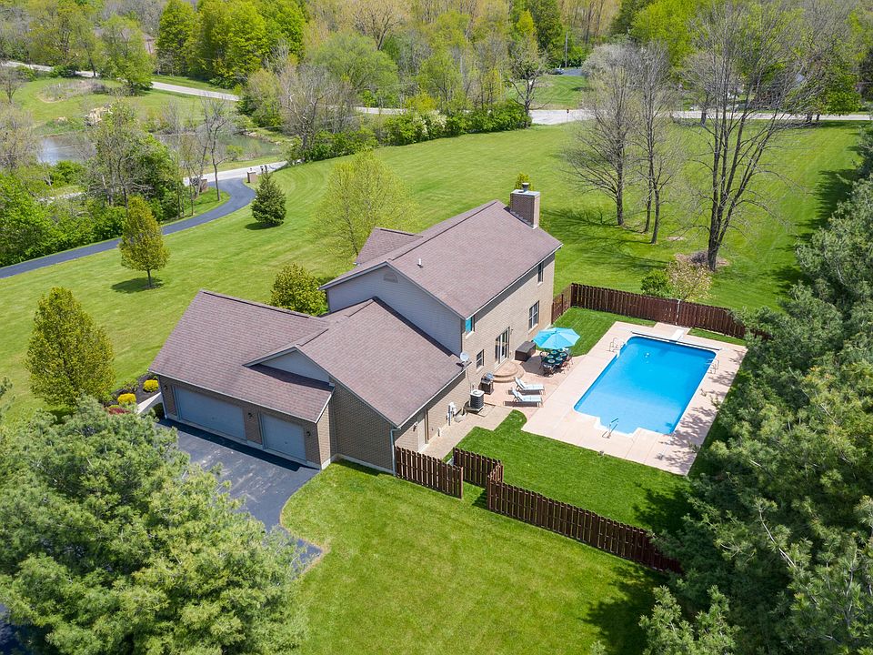 OPEN HOUSE This Sunday(6/14) from 2-4pm. ''Stay Cool in your Own Pool'' Just in time to enjoy the heated in-ground (36x18)swimming pool w/auto cover. POOL PARTY! Privately situated on 3.46 lush acres this custom built ALL brick home is one of a kind! The 12-course finished basement adds 1000 more sf & offers another full bedroom, 2 separate living spaces w/stairs to garage. 3.5 car garage is just what you will need for your extra toys for pool or LAKE! More extras include - new AC/heat pump-2-story foyer, Anderson tilt windows, new pressure tank, new pool motor & stamped concrete patio. You are conveniently located just a few minutes from Madison Lake State Park. Best of both worlds - Lake Life in the Country. Only 10 Min to I-71 & I-70