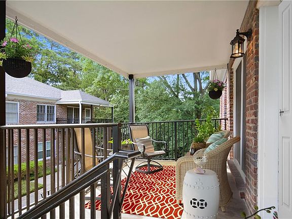 Gated complex feels different than most with a beautiful newly landscaped courtyard with grass, trees, gardens, & gas lanterns lining the walkway. Condo has 2 large private porches for great outdoor space, tucked at the quiet but convenient back of the complex. Top floor, END UNIT, 2-car COVERED parking, and STORAGE unit! MINT condition with open floor plan, wide plank flooring, new light fixtures, fresh paint, & 9' ceilings. Kitchen has stainless steel appliances, newer refrigerator, GAS stove and abundant counter space. Oversized primary bedroom with ensuite bathroom. This is one of the few units with non-abutting bedroom walls (with the unit next to it.) Complex recently re-roofed (in 2019.) Washer / dryer remain! Walking distance to groceries, restaurants, shopping, and MARTA. Secure/gated community.