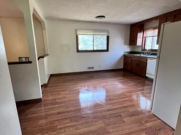 Duplex unit available starting June 1st! Easy access to 35W and located in the great Centennial school district. This house has a spacious family room and eat in kitchen with an open-concept floor plan and lots of natural light, 2 large bedrooms, and 1.5 baths. New paint, flooring, and windows throughout majority of unit. Features include a private garage, half an acre yard, and large private laundry. Tenant responsible for gas, electric, trash, and water. Additional pet rent may be required. Section 8 not accepted. Please note the unit is currently undergoing renovations. Images shown are of adjacent unit and are used to show layout. New flooring and grey paint throughout majority of unit with updated appliances and new windows. Tenant responsible for gas, electric, trash, and water. Additional pet rent may be required. Tenants are responsible for lawn and snow care. No smoking inside.