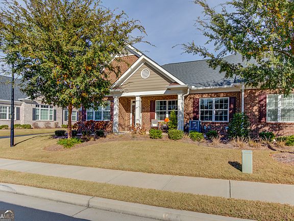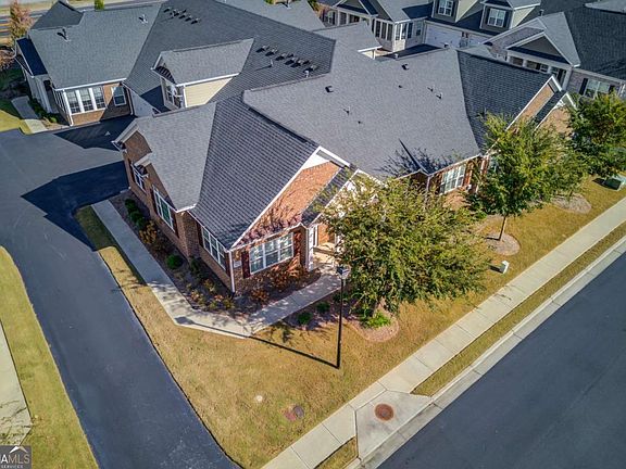 Welcome to Orchards at Park Ridge, a 55+ gated community in Buford with convenient access to Interstates 85, 985, and the Mall of Georgia area for a vast array of shopping, dining, and entertainment options. A covered front porch welcomes you and your guests and the spacious kitchen with upgraded Kitchen Aid/Whirlpool appliances features white cabinets, granite counter tops, and breakfast bar views the open concept floor plan with views of a formal dining area, den/flex room, and family room with soaring ceilings, built-in shelves/cabinets, and gas log fireplace. The primary suite features a trey ceiling and spa type bath with oversized shower, dual vanities, and walk in closet. Additional main level features include a second bedroom with trey ceiling, hall bathroom, and mud area laundry room with full size utility sink. The upper level boasts a large suite with private bath and closet that is perfect for guests or additional indoor storage. The community features a pool, fitness center area, and clubhouse with activities that include all kinds of interests.