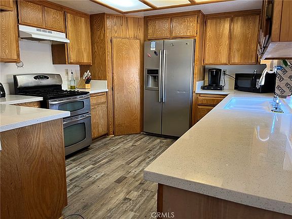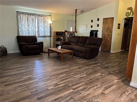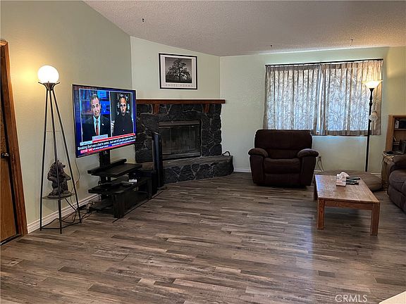 Seller will assist with buyers closing costs: Lovely home in fantastic location very near the heart of town. Walking distance to High school and Middle School. Elementary school is just a little further away. Beautiful view lot in a private location. Less than 2 miles to virtually everything. County records say it is a 4-bedroom home, but it was built to be 3-bedroom, 2-bath home with a separate family room; although, the family room does have a closet and was previously used as a bedroom. Newly installed LVP flooring throughout. Cozy stone fireplace in living room with raised hearth. Upgraded quartz countertops in kitchen and spacious corner pantry. Very spacious bedrooms. First bedroom has custom built-in bookshelf. Large linen cabinets in hall bath, plus plenty of hallway storage as well. All on fenced 2-acre corner lot. Large covered front porch. Established herb garden and strawberry patch, Vegetable gardens and several fruit trees: pomegranate, cherry and apple. Oversized, attached 2-car garage with additional room to park 4 cars on the driveway. Did I mention the Flat Tile Roof!? All the standard built-ins including the refrigerator and new garbage disposal. Professionally built 8'x12' storage shed plus another 8'x8' shed, too. Complete perimeter fencing and view lot. Easy access to HWY-138. Snow Summit is only a few minutes away.