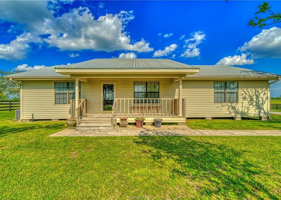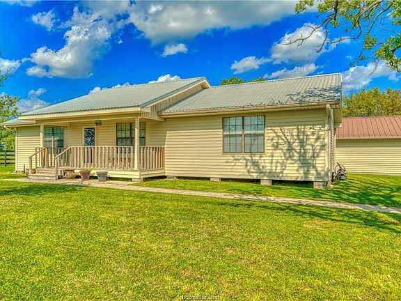 Peaceful country home and barn on approximately 60 acres of premier land in Madison County and only 30 mins to Bryan/College Station. Featuring a well built 3 bed/2 bath home with 1,568 Sq.ft, metal roof, covered porches and 2 car detached garage with large entertaining deck among aged oaks and beautiful views of the property. The land is highly efficient and cross fenced with almost 100% useful for grazing livestock or growing a nice coastal hay crop. Ag exemption, road frontage on two sides, rolling pastures, 2 ponds, and scattered oaks make this a must see property and investment you can stand on!!