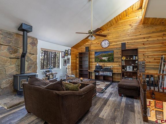 Welcome to your tranquil retreat nestled in the tall pines on Summit Ridge! Located close to the Town of Mancos, Summit Lake, and the San Juan National Forest, this 2 bedroom, 2 bathroom home with loft on over 5 acres provides easy peaceful living. The previous owners renovated much of the home, including new flooring, kitchen finishes, new bathroom and lighting along with some T&G blue pine accents. Current owner recently installed new dishwasher in kitchen. Large windows let in lots of natural light and highlight the magnificent pine trees. The entire walkout lower level features a master suite, with a spacious bedroom, and a large walk-in closet with high end washer and dryer that are only a couple years old. There is also an attached office/large mudroom with separate access from the main entry. The bathroom has a large jetted tub and even more storage. The oversized 2 car detached garage has electric and makes for a great workshop with lots of built in storage and work benches plus an additional wood stove for heat. This home would make for a great seasonal retreat or full time residence with additional living quarters that is currently a VRBO bringing in between $8,000-$12,000 annually and is consistently rented. Split units for added heating and cooling in both the main home and the rental. Garage apartment/rental unit also has a wood burning stove and had a new oversized sump pump installed recently with an additional access point for ease of maintenance, along with a new hot water heater. Septic was serviced in May of 2023.