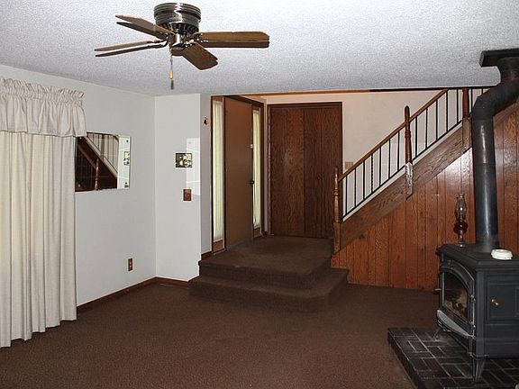 MOTIVATED SELLERS! Located minutes NE of town, this acreage offers a home, yard for children & pets, & room for gardens. A 30'x36' metal building is perfect for add'l vehicles, shop or man cave! Surrounded by trees, the house is set back from the road for privacy. A hard surfaced drive, flanked by perennials, leads to the home. A foyer, w/closet, & a FR, w/W-B stove & a large window, are found inside the front door. A BR, bath & storage room complete the lower level. An open staircase leads to the upper level. Floor-to-ceiling windows on two LR walls allow in natural light, while built-in shelving provides a display area! A peninsula, w/room for bar stools, separates the dining area from the kitchen. A three-seasons room is situated off the dining area. The laundry is conveniently located near the kitchen. Three BRs, a bath & two closets complete the upper level. CLICK HERE for virtual tour!<