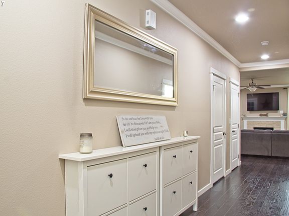 Beautiful home in Sandy Bluff Community!This high efficient home offers an open concept living area with stacked stone gas fireplace, engineered hardwood floors & crown molding throughout 1st floor. Large Kitchen features tile back splash, double peninsula and awesome pantry. Dining room off kitchen with french doors to fenced back yard with sprinklers. Laundry room on upper level with bedrooms. Great park & fenced dog park close by.