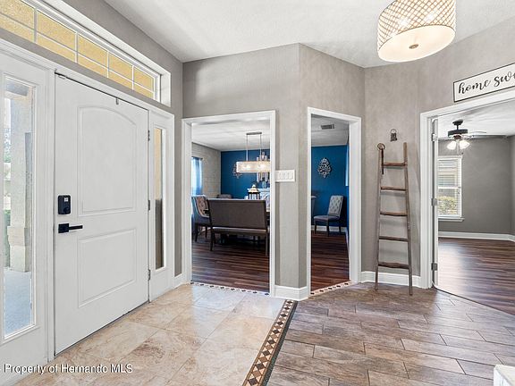 Charming Family Home in an Ideal Location! Welcome to your dream home, built in 2016, perfectly situated for convenience and comfort. This stunning property offers an incredible layout that your family will love. Located within a mile of Chocachatti Elementary School and Nature Coast Technical High School, it's perfect for settling in before the new school year starts. Enjoy easy access to shopping and the Suncoast Parkway, with exciting Tampa just 45 minutes south and serene Homosassa 30 minutes north. This beautiful home features 4 spacious bedrooms & three full baths. The expansive primary retreat boasts a stylish tray ceiling and enough space for an office or sitting area. The unique his & her primary baths include a soaking tub, a tile shower, and two large walk-in closets. The secondary bedrooms are generously sized to accommodate king-sized beds with ample space remaining. The remodeled front room offers endless possibilities, adaptable to your needs. No expense has been spared in this home, featuring elegant porcelain wood-look tile throughout. Enjoy your morning coffee on the freshly sealed paver back porch while listening to the soothing sounds of a 15-foot, hand-built koi pond. Need extra storage? The enormous hand-built shed has you covered. The backyard is fully enclosed with vinyl fencing, providing both privacy and security. Unlike new builds that may lack character, this home offers space and distinction from neighboring properties. Move in now to this like-new, perfect family home, ready and waiting for a new family to call it home. Sellers are highly motivated, so don't miss out-this gem won't last long!
