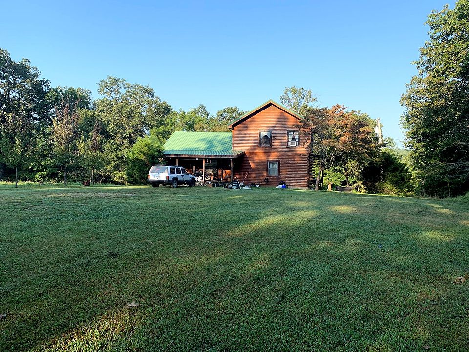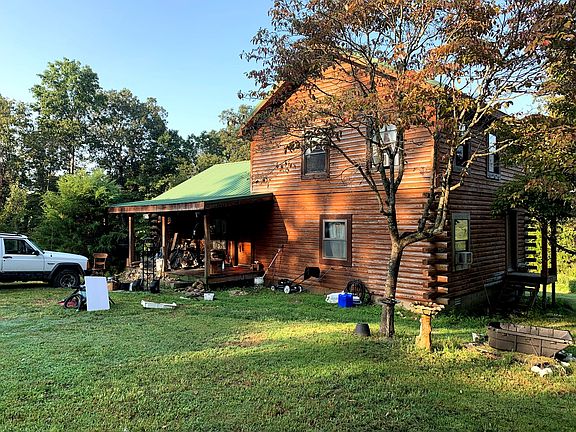 Here is a rustic log home sitting high on a hill at the end of private driveway that offers beautiful views of these Ozark Hills & Valleys!! This almost 1,600 sq. ft. 2 story log home has big spacious rooms (22'3" by 23'5" great room) with wood cathedral ceiling & wood floors throughout. Has 2 big bdrms &1 ½ baths. Beautiful corner stone hearth wood stove heats the whole house--has back-up propane wall heater for those change over times of year as well as duck work already in for central heat/air system. The 27 acres are mostly wooded. There is a 30' by 40' new shop building with 12' by 12' overhead roll up door as well as hydronic indoor heating underneath concrete floor. There is a hook-up for another home and/or RV--- Water, septic tank (500 gal concrete) propane gas line, electric, phone hookup. Its only 12 min to Maumee access on Buffalo Nat'l River 10 miles south of Yellville, Arkansas. Priced @ $199,500.