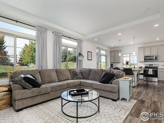 Like new without the new build price, this Multi-Level 3 bed, 2 1/2 Bath Coach home in Thompson River Ranch by Oakwood Homes is loaded with $50K in upgrades, boasts amazing Mountain Views and shows like a model home. Features include Granite Counters, Huge Island, Mountain Views from Kitchen Window and Main Floor Balcony, Central Air, Forced Heat, Luxury Vinyl Plank Floors, upgraded Carpet. Lower level has walk-out to covered entertainment area off Bonus room, 2 Car Attached Garage in Cul De Sac location. Community has schools, parks, trails, 2 outdoor pools, gym, frisbee golf course, new rec center (coming soon) and is close to major shopping, restaurants and I-25 for an easy commute to anywhere! Low HOA includes Snow Removal in common areas and driveway. Book your tour today!
