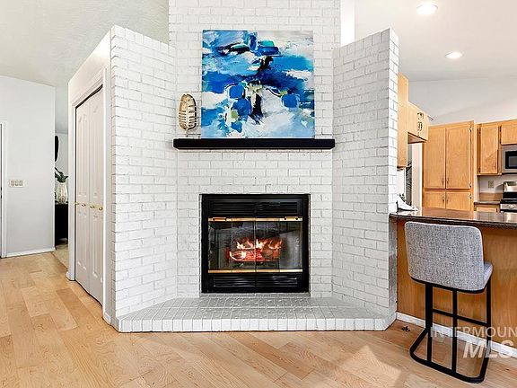 Traditional elegance in the coveted Lakewood neighborhood! Framed by beautiful mature trees on a prime corner lot, this single-level residence is ideal for right-sizing in a desirable SE Boise location. Well-maintained and neatly landscaped, this residence features distinctive curb appeal and an inviting allure. The home features a generous open design crowned with vaulted ceilings and lined with beautiful wood windows where casual and formal spaces are defined by a central fireplace wall. Hardwood floors add soft warmth to the naturally bright interior, while a floor-to-ceiling brick fireplace stands as a focal point in the great room. The kitchen features granite countertops, stainless steel appliances, pantry storage, and corner windows overlooking the serene park-like setting. Dual dining spaces provide flexibility to host dinner parties in the formal area or everyday meals at the built-in dining bench set below a large bay window.