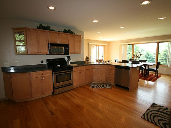 Convenient location between I-94 & Lake Geneva. Almost new ranch, master suite with whirlpool, natural fireplace, ''open Kitchen/Living rooms. Hilltop setting with beautiful views. Additional 1500+ Sf finished in English basement (rec. room, bar room and bath). Finished heated 3+ car garage, North boundary has steel fence from orignal farm.