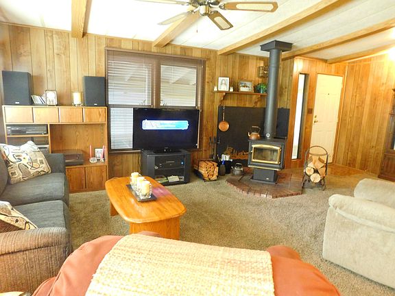 Well kept 2 bd 2 ba manufactured home in nice and neat quiet park'. The home has been well maintained with newer flooring, roof, heating and cooling. 2 good sized sheds 1 is a workshop, the other is for storage. Lot backs up to BLM land for a little extra privacy. Park space is $475 per month, and covers water, sewer, and garbage.