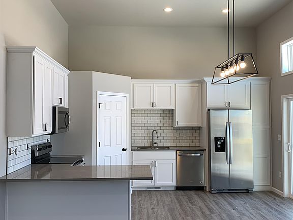 Quartz counter tops, luxury finishes, stainless steal appliances, plank flooring! This 3 level townhome was built in 2023. Upper level features master suite, another bedroom with a walk in closet, full bathroom and laundry closet with full size washer and dryer. Main level has the kitchen and living room with high ceilings, tons of natural light, and walk in pantry! Lower level has a large storage closet, full bathroom, and bedroom with a walk in closet. Enjoy a double stall attached garage, along with yard space! Ample closet space in all bedrooms, gorgeous high ceilings in living space, and a home-y feel. Pet friendly/Lawn care and snow removal included. Located off Veterans near Scooters Coffee. *Model photos