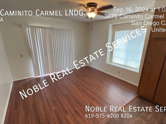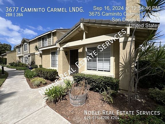 2995.00 Dogs ok Cats OK Pets OK. Breed restrictions apply. No Yes Deposit: $3195.00 **On Approved Credit** North county gem waiting for you to call it home. Newer paint and window coverings make this property move in ready! Comes with detached 1 car garage, stackable washer and dryer in unit, cute back patio with access from the masterbed and living room that has a beautiful chimney for the winter. Community pool and spa, just 3 blocks to freeways, schools and shopping! PLEASE DO NOT GO TO THE PROPERTY UNLESS YOU HAVE A SCHEDULED APPOINTMENT.. (**If no showtimes are available, don't worry! Go ahead and submit your info and our automated system will let you know when showtimes become available). Also, please be sure to click on the 'Apply Now' button to see all of our requirements and how we work! JG/lc 8/28/24 No Noble Real Estate Services 1371 Presioca St. Spring Valley CA 91977 2995.00 **On Approved Credit** Yolanda or Emily 2024/9/4 3677 Caminito Carmel Landing, San Diego, CA 92130 Six Months Lease