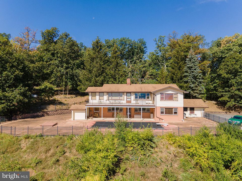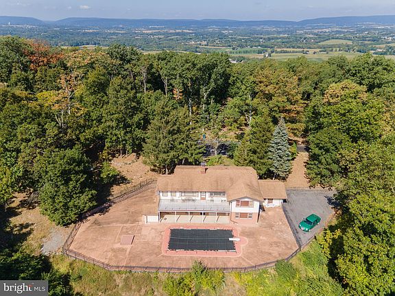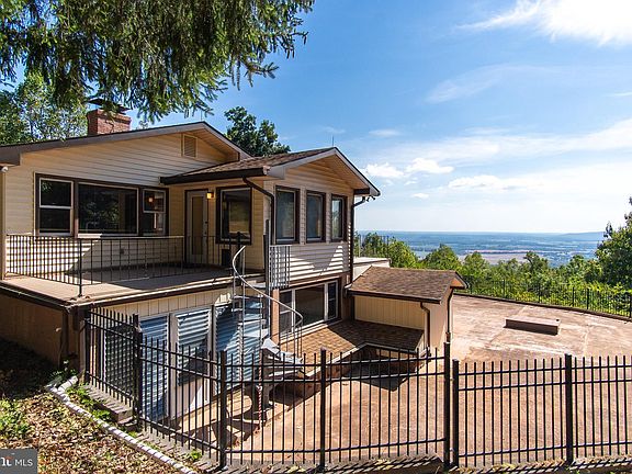 Location, location, location! Spacious rancher located in a retreat-like setting on 5.25 acres with scenic, panoramic views of Sugarloaf Mountain in the distance. For people who value both privacy and nature: this is it! With 3,288 finished sq ft on both levels, this home is much larger than it may appear. On the main level, you will find a spacious kitchen with island, two bedrooms, a full bathroom, a large living room with a 2-sided wood burning fireplace , and sunroom. From the sunroom, you can exit onto a private front balcony which leads to a spiral staircase down to the outdoor pool area. From the dining room, you can either enjoy the gorgeous views from inside or step out onto a large balcony which overlooks not only the in-ground pool but much of the Frederick area. Downstairs, you will find a large family room at 32' by 13' with a second wood burning fireplace. Off of the family room, you will love to relax in the sauna. There is also a large third bedroom located downstairs with its' own private entrance, a full bathroom, a bonus room, and large storage/laundry room with built in shelving. The concrete area that surrounds the pool is approximately 5,500 sq. ft. of useable outdoor space. There is parking galore: an attached garage measuring 20' by 17', a detached garage measuring 28' by 12', a paved driveway, and parking in front of home. You will love the private setting, exceptional views, and convenient location of this property.
