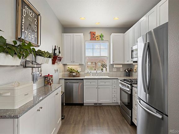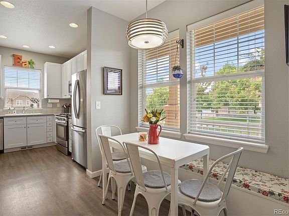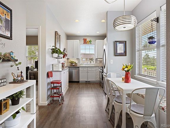 If you're seeking light and fresh low-maintenance living in Castle Rock, you'll instantly fall in love with this corner townhome! With shady trees, the location is optimal for peace and privacy with rooms bathed in natural light, thanks to the wall of extra windows. The interior is stylishly updated to blend comfort with efficiency, featuring a modern kitchen with quartz countertops, white cabinetry with under-cabinet lighting, and stainless-steel appliances. Additional storage is cleverly integrated, including a pantry cabinet and the dining nook's window bench doubles as extra storage. The home has three bedrooms, including a main level guest room and upper primary with lovely mountain views and a walk-in closet. There are full bathrooms on each level, and the loft nook is perfect for an office, workout area, or hobby space. Outside, the covered front porch is a welcoming spot to view local deer, while the bonus patio area is perfect for watching sunsets. The water heater is brand new, the HVAC and plumbing systems are routinely maintained, and the washer and dryer are included. An attached 2-car garage provides hanging storage racks plus there’s a deep accessible crawl space. Enjoy easy access to walking trails, the greenbelt, nearby parks, playgrounds, and the Grange community pool, included in the HOA dues. Truly home sweet home.