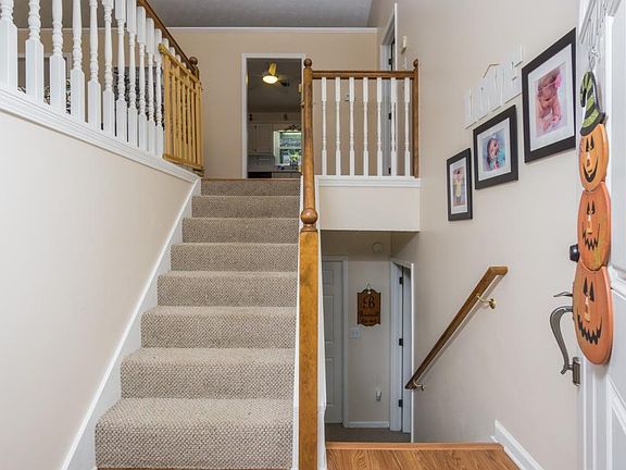Charming home on a large corner lot! New roof, new appliances and an open floorplan to boot! Vaulted dining room & great room with fireplace. Sunny breakfast room opens to porch for outside enjoyment. Lovely vaulted master suite retreat, bath with garden tub and separate shower. Spacious finished basement perfect for entertaining and a side bedroom with a full bath. Large leveled yard and extra parking for a third car!