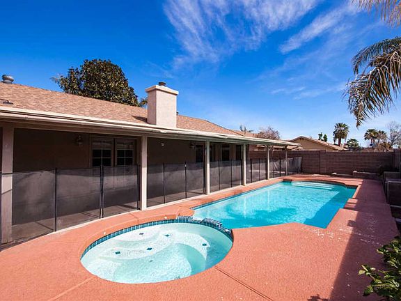 MUST SEE,Beautiful 4 bedroom 2 bath pool home with spa in Rancho Sereno! Eat-in/Country kitchen with bay window, breakfast bar,and lots of cabinet space. Family room with vaulted/elevated ceilings, tile flooring and fireplace. Wall to wall carpet in bedrooms, master suite with walk-in closet, garden tub, and french doors to back yard. Lush, green lawn and covered patio, create a great space to entertain. 3 car garage, and Double gates give plenty of space to store your desert toys. Make it yours!