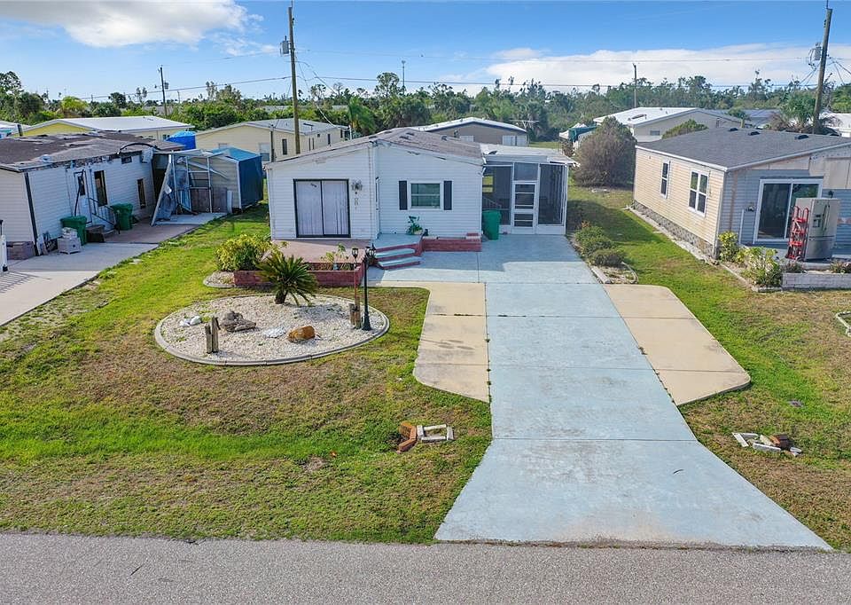 PRICE REDUCED. HOME FOR SALE IN A 55+ COMMUNITY, IN VIZCAYA LAKES. THIS HOME HAD HURRICANE IAN DAMAGES AND IT NEEDS A NEW ROOF, SIDE SIDING WALL AND VINYL ENCLOUSED LANAI OFF KITCHEN AREA. THE INTERIOR IS IN PRETTY GOOD SHAPE AND IT'S IN LIVABLE CONDITIONS. THIS HOME HAS AN OPEN PLAN WITH AN EAT-IN KITCHEN PLUS NICE DINING AREA. MASTER SUITE WITH AMPLE CLOSET SPACE AND PRIVATE BATH WITH UPGRADE WALL TILES. ATTACHED SHED WITH PLENTY OF STORAGE SPACE. HOME IS OWNED BY THE ESTATE OF CHARLOTTE CATHERINE BLACK WHICH IS PENDING IN THE CIRCUIT COURT OF CHARLOTTE COUNTY. SELLER IS THE PERSONAL REPRSENTATIVE OF THE ESTATE AND WILL OBTAIN AN ORDER DETERMINING HOMESTEAD STATUS OF REAL PROPERTY. SELLER HAS NEVER LIVED IN HOME AND CAN MAKE NO REPRESENTATIONS ABOUT THE PROPERTY. BUYER SHOULD PERFORM ANY INSPECTIONS DESIRED.