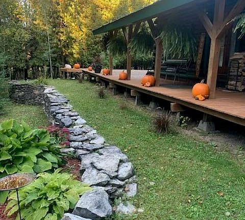 - Features: Irregular Lot, Horses Allowed, Garden, Lawn, Rock, Wooded