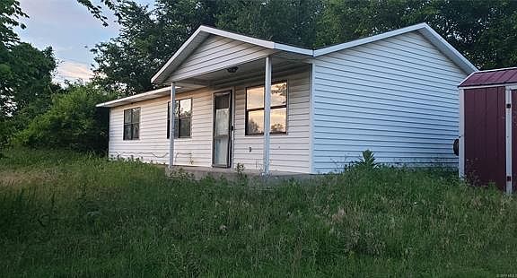 Hilltop sunset views from the country front porch of this compact ranch style home on 5 acres. Updates needed, ideal flip or first home. Vinyl siding, mature trees, central HVAC.