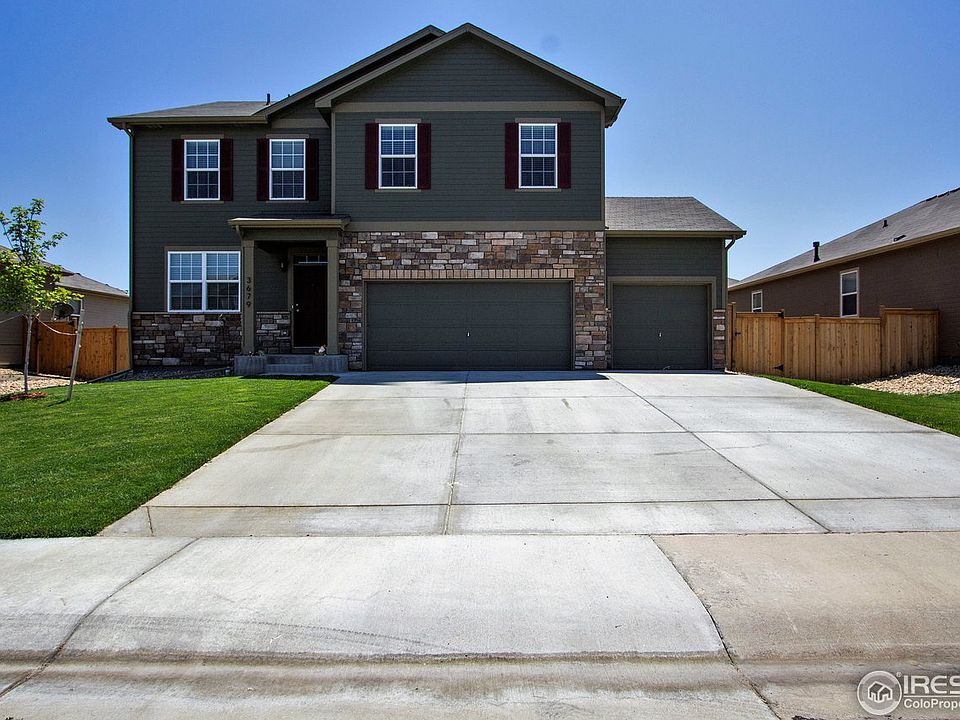 Welcome home! This beautiful open concept home boasts four beds, three baths with a large master suite, walk-in closet, spacious master bathroom with a second closet. Cozy loft and convenient upper floor laundry room, and main floor office. Unfinished basement ready for expansion. Over-sized three car garage. In a small part of Wellington that has 100 mbps internet, close to community parks, stores, schools, easy access to I-25, 15 min to Old Town Fort Collins. HOA provides lawn water.