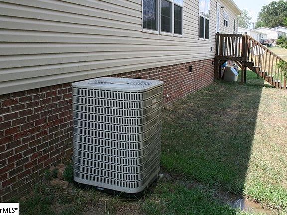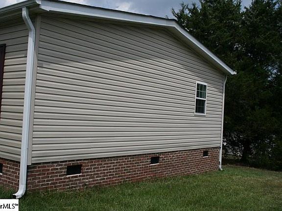 FHA Financing possible on this 3 bed 2 bath well maintained doublewide on a permanent brick foundation. Built in 2009, this is a one owner home located in the desirable Blue Ridge High School district. Just minutes to the mountains or shopping etc in Greer, you will find this location to be well suited. A fantastic place to entertain family and friends. As you enter the home, you are greeted by an open floor plan with hardwood-style laminate flooring throughout which consists of a living area (27x12) a dining area (13x11) and a den with a wood burning fireplace (18x16). The den has been decorated as a billiards parlor and even has an elevated removable stage. With a generous amount of hardwood cabinets and a center island, the kitchen (13x13) opens to the living area as well as a butler's pantry. A walk-in laundry room off the kitchen is conveniently located. The refrigerator will remain with the house. The master bedroom with huge walk-in closet is uniquely decorated. Hardwood paneling accents the master bedroom wall. The en-suite master bathroom is complete with separate shower, garden tub and double sinks. A wooden storage shed will remain with the property.