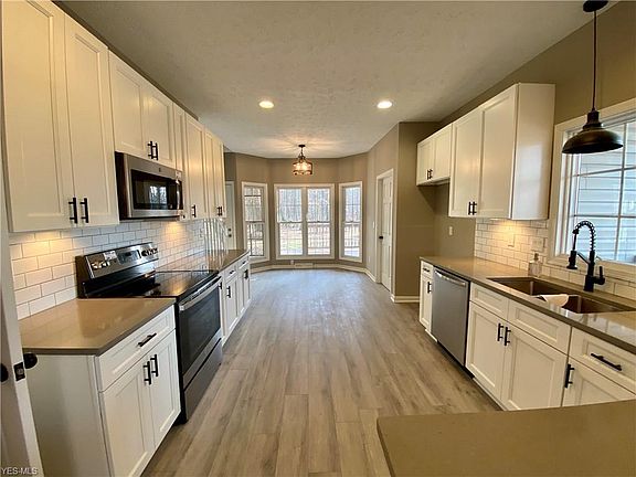 Come take a look at this 6 acres of wooded beauty, privacy, your own retreat. Huge pole barn with overhang, perfect for a livestock or a small business, or to store your vehicle(s) for a car enthusiast. Outbuilding has running water and electricity. This home has a beautiful first floor master bedroom, master shower, everything new from paint to flooring. Kitchen has quartz countertops, soft close cabinets. Everything in the house has been 100% updated and re-done. Four bedroom home or you can use the fourth bedroom for a huge bonus room/office. Finished basement area, geothermal heat. Almost 2600 sq feet with another 1600 finished in basement. Dual entry to basement. Awesome private landscaping in sandstone patio with fire pit, screened in porch with hot tub and wraparound porch. Great price for the size of house on 6 acres. This home wonât last long. Seller is a licensed real estate agent in the state of Ohio.
