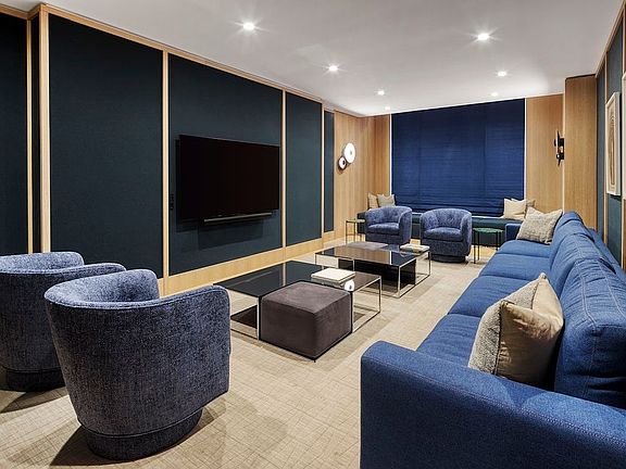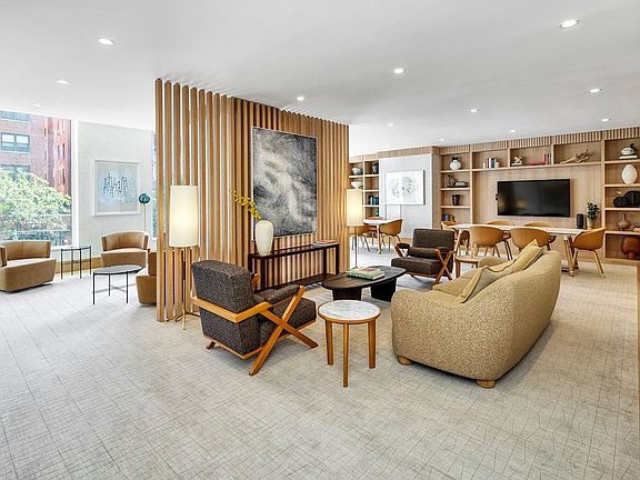 With a full floor of vitality and entertaining amenities, VU provides residents with a variety of offerings that are designed to enhance the quality of everyday living. From the fitness center to the screening room, to the lounge and the pantry, Paris Forino designed each space with thoughtful intention toward how New Yorkers live today. The beauty of VU's attended lobby resides in the subtle refinements of European white oak paneling paired with honed Palladium travertine floors. High up on the 36th floor sits the rooftop terrace, where lush greenery and plush furniture invite you to take in unrivaled city views.