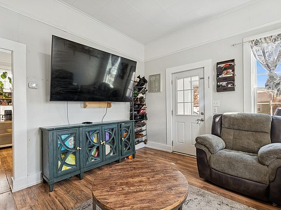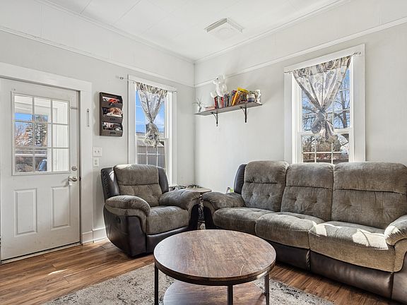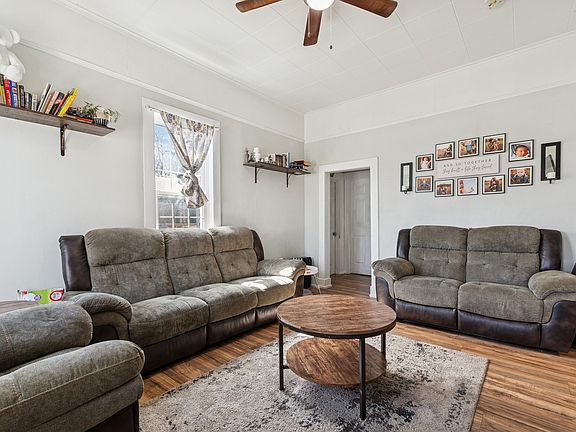 Great opportunity to stop renting and become a homeowner with this cozy two-bedroom, one-bath home located in the heart of downtown Kalispell, the fastest-growing micropolitan city in the US, yet full of small-town charm. The home features tall ceilings in the living room and kitchen, adding a historic touch and creating a spacious open feel. The main level offers 863 sq ft of living space, while the utility basement provides an additional 186 sq ft perfect for storage. A designated laundry room provides for additional multi-use space you can get creative with. Keeping its original charm, the home has received updates in recent years, including a kitchen with updated cabinets, countertops, faucet, and a new range installed in Sept 2024. The bathroom features a newer vanity, mirror, lighting, and tiled shower, complemented by low-maintenance laminate vinyl flooring throughout. The water heater was replaced in December 2024, and the metal roof, estimated to be from 2017, ensures durability. The spacious, fenced yard is ideal for animals, kids, outdoor entertainment, and gardening. Located on the East North side of Kalispell, the neighborhood offers mature trees and landscaping, and is walkable to local amenities such as restaurants, shopping, parks, and groceries. Its central location provides easy access to attractions like Flathead Lake, Glacier National Park, Glacier International Airport, Flathead Valley Community College, and Whitefish Mountain Resort. Whether you're starting out with your first home, relocating, securing a second/vacation home, or investing in a rental, this home is a fantastic opportunity with lots of potential.