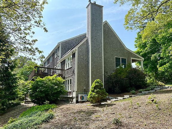 Spacious 4,000+sf Contemporary Cape in lovely Hatchville Country Setting near Coonamessett Pond. So much to offer with a Flexible Open Floor Plan. 3-BRs, 4-Bths, 2-Fireplaces, 2-Kitchens, 2-Decks, Family room, Den, Home Office, Wood Floors, Cathedral Ceilings, Central A/C, Finished Lower level for Entertaining, 2-Car Garage, and energy efficient Solar. Set far back from road on a 1.39-Wooded Acres. Convenient to Highways, Conservation Land, Golf, Restaurants, Shopping, and Beaches.