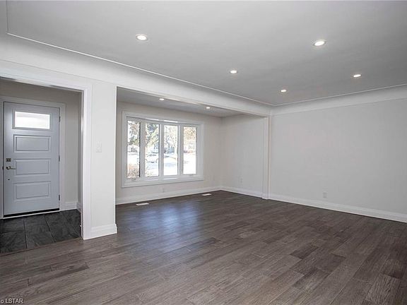 Byron 4-bedroom, 3 bath home on pool-sized 50' x 188' lot. Interior totally renovated from top to bottom. House is much larger than it looks from the road. Huge master bedroom retreat upstairs with ensuite. Located on very desirable, quiet street lined with mature trees. Lots of space to build potential garage or shop. Beautiful paving stone driveway & rear patio. Pot lights galore; large fully-finished family room in basement; rear power awning. Close to several excellent schools, Springbank Park, Byron Ski Club, shopping, public transit; easy commute to downtown London. Glass shower doors for upper & basement baths ordered and to be installed soon. This home is in 'mint' condition, ready to move in and enjoy.