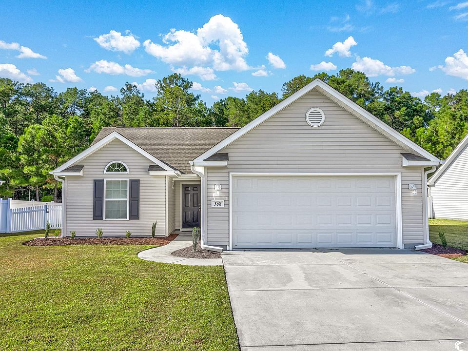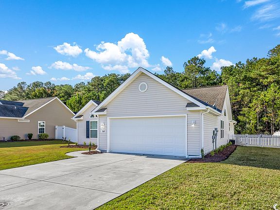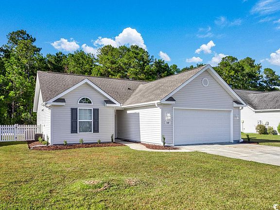 This single-level move-in-ready 3-bedroom, 2-bath home is a true gem with its inviting features including a large patio and a nice in-ground pool. The open floor plan showcases a spacious family room with vaulted ceilings that seamlessly connects to the well-appointed kitchen. The large master bedroom is a retreat in itself, boasting a walk-in closet, tray ceiling, and a ceiling fan. The master bathroom offers a convenient walk-in shower. Both guest bedrooms are equipped with ceiling fans for added comfort. Stepping into the fenced backyard, you'll find an enticing in-ground pool large and a screened inclosure just off the family room. In-ground pool backs up to a private fence and a wooded area. New carpet and paint throughout gives an added touch to this well appointed home. Conveniently situated just off HWY 701, this home is a short drive away from local schools, shopping centers, dining venues, and beautiful beaches. Don't miss your chance to see this home; it won't be on the market for long!
