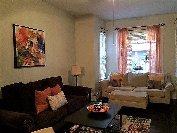 This spacious duplex townhouse is located close to Schiller Park and Thurman Cafe! There are dark hardwood floors and tall ceilings throughout. The bright front living room is great for entertaining and is open to the formal dining room with a decorative fireplace and charming built in. The kitchen and half bathroom are off the back of the dining room and offer ample cabinet space, black appliances, tile floors and upgraded counters. There is a large pantry off of the kitchen with access to the fenced back yard. Take the grand staircase to the second floor where you'll find three large bedrooms- one with a walk in closet- and one full and updated bathroom. Washer and dryer are provided for tenant's use only. NO SMOKING & NO CATS. Tenant pays utilities; trash is included. Washer and dryer provided for tenant's use only. No cats. Strong credit preferred.