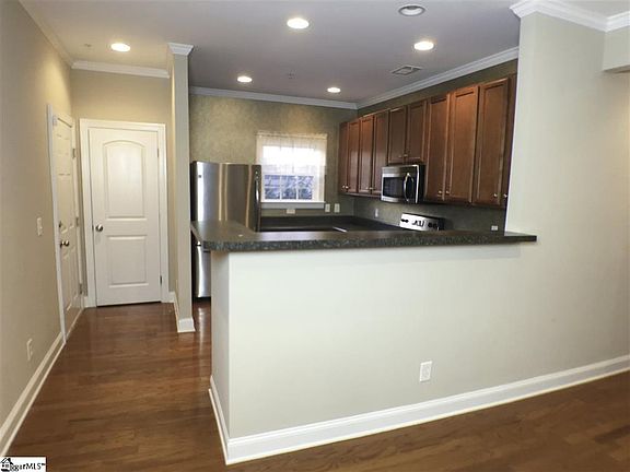 Location, Location, Location! One level 3 bedroom, 2 baths end unit that backs up to the woods overlooking the pond! This condo/villa is within walking distance to everything you'll need, all within a gated community. The community offers maintenance " free" living with a pool & bath house. This open floor plan features 9' ceilings, spacious living room/dining room, overlooking kitchen w/ large pantry, walk-in laundry room with added storage shelving, new washer and dryer, new refrigerator, new blinds! Call today to tour this home.