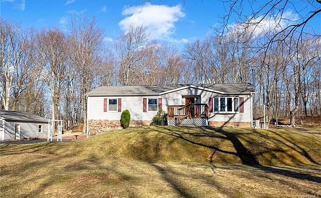 Country roads will take you home to this ranch style home in the Minisink Valley school district!Park like property,one level living and very LOW taxes are just the beginning of things to love about this town of Greenville find.Large,eat in kitchen with sliders to deck for grilling and chilling or enjoying the large level yard.Three good sized bedrooms and updated half bath to complement the master.Full bath has been beautifully renovated with custom tile work and contemporary fixtures.Home sits pretty on almost one acre and feels much larger as lot backs to woods for peace and privacy.Numerous big ticket improvements have been made including roof,siding, windows,furnace,water heater,well including new tank and pump and various appliances.One car garage and full basement are ideal for storage and detached two car garage will be the place to store the quads,snow mobiles or use as a workshop.Great commuter location less than 4 miles to Route 84 and minutes to Metro North train station.