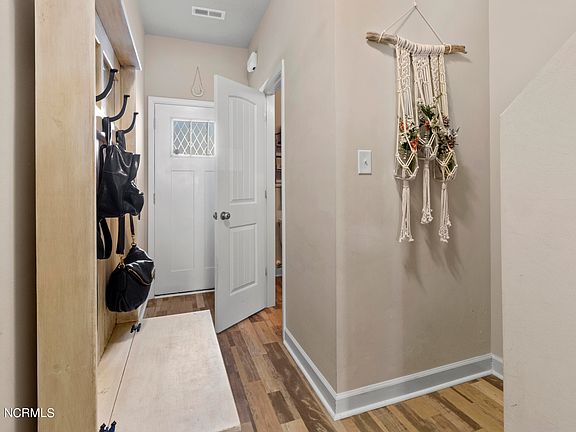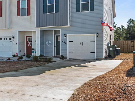 Welcome to The Landing at Folkstone in beautiful Holly Ridge! This meticulously maintained, move-in ready townhome is a must see. With 3 bedrooms, 2.5 bathrooms, low maintenance vinyl flooring throughout, and a completely redone backyard, this end unit is highly desired. The backyard boasts a wooden fence, covered patio, and is sodded with built-in areas for a fire pit, a dining area, and a playground- perfect for all the entertainers and outside hang outs!The living room, dining area, and kitchen all flow together nicely with an open feel. The kitchen finishes are up to date, and it has tons of counter space with an overhang for bar stools. On the carpeted second floor, the HUGE master bedroom has large windows that let in natural light, and a spacious walk-in closet. Conveniently located off Highway 17 for easy access to Wilmington, beaches, Camp Lejeune/Stone Bay, shopping, and more, this townhome will go quick. Don't miss your chance to see it!