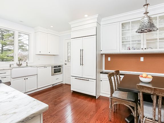 Completely renovated home with state-of-the-art amenities. Georgeous top-of-the-line chef's kitchen with custom, eco-friendly Executive Cabinetry, 4-burner Wolf gas range with infrared charbroiler and Wolf ventilation system. SubZero French door refrigerator/freezer, Miele Dishwasher, Rohl fixtures, Shaws original fire clay apron sink, hand-crafted backsplash, natural Quartzite countertops, custom wood built-in breakfast table, plus deep storage and pantry. Wood burning fireplace with marble surround. Hardwood floors on first and second floors. Marble powder room. Rohl and Koehler fixtures and custom vanities. Custom finished closets. Large master bedroom with sitting area and 8 1/2 foot ceiling, custom marble bath with radiant heated floor. Anderson windows, state-of-the-art hard wired security system, three zone heat and air conditioning. CAT-5 wiring. Multi-zone lawn sprinkler system with digital control panel. Close to worship. Square footage includes lowest level. This is home!